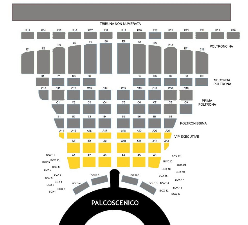 La posizione delle categorie di biglietto disponibili sono consultabili sulla mappa dell’evento. Si segnala che: